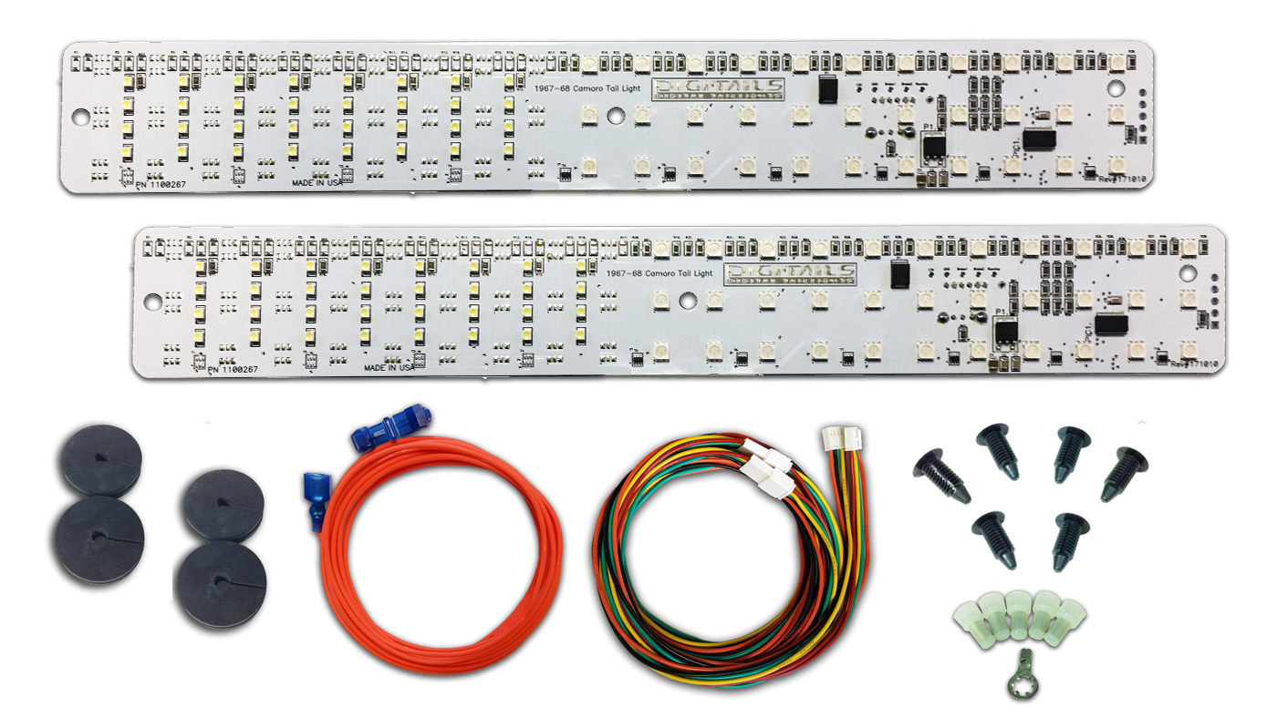 Get noticed with DIGI-TAILS digital LED taillights, brighter and more eye-catching than anything else available. Make your car safer for you and other drivers at any speed. The DIGI-TAILS kit includes everything needed to replace your old bulbs with superior LED lighting. High-intensity wide-angled LED light panels fill each lens to maximize light output of your lens.