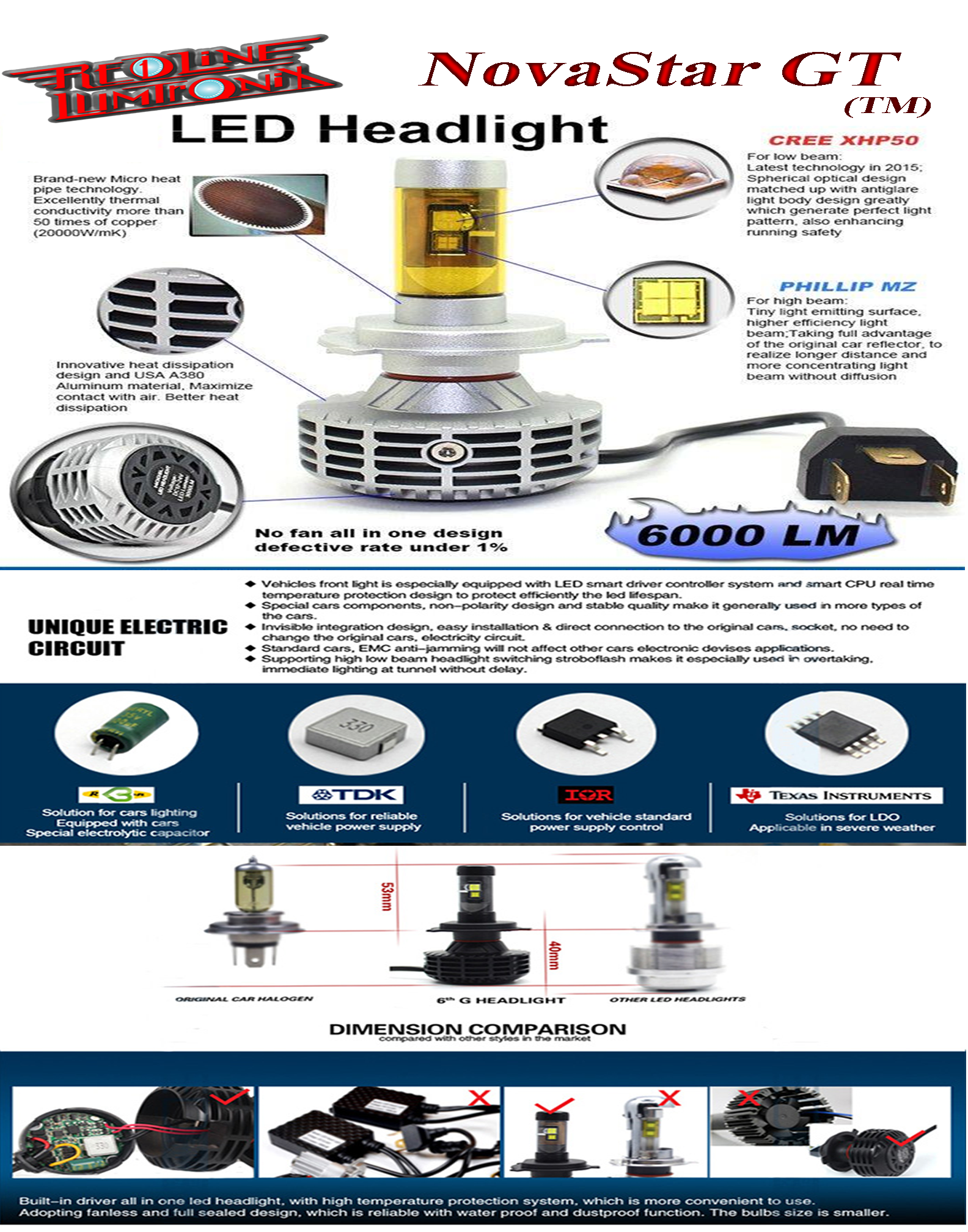 9004 NovaStar GX High+Low Beam LED Headlight Bulb 6000 Lumens (One Pair) (BU-022)