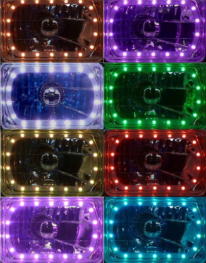 - (1) 4×6 Inch Rectangle Elite Diamond Multi-Color Halo Headlight