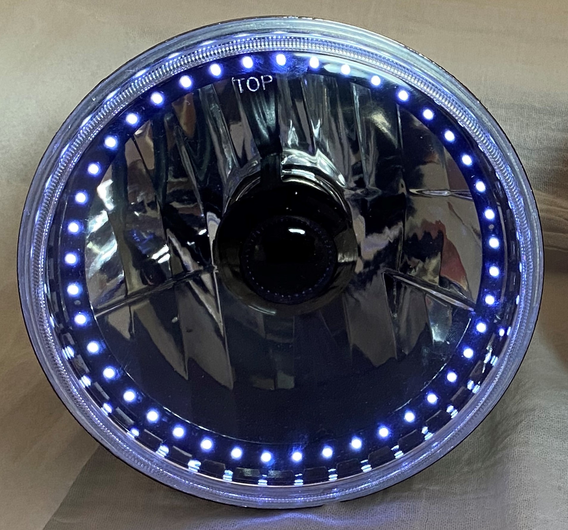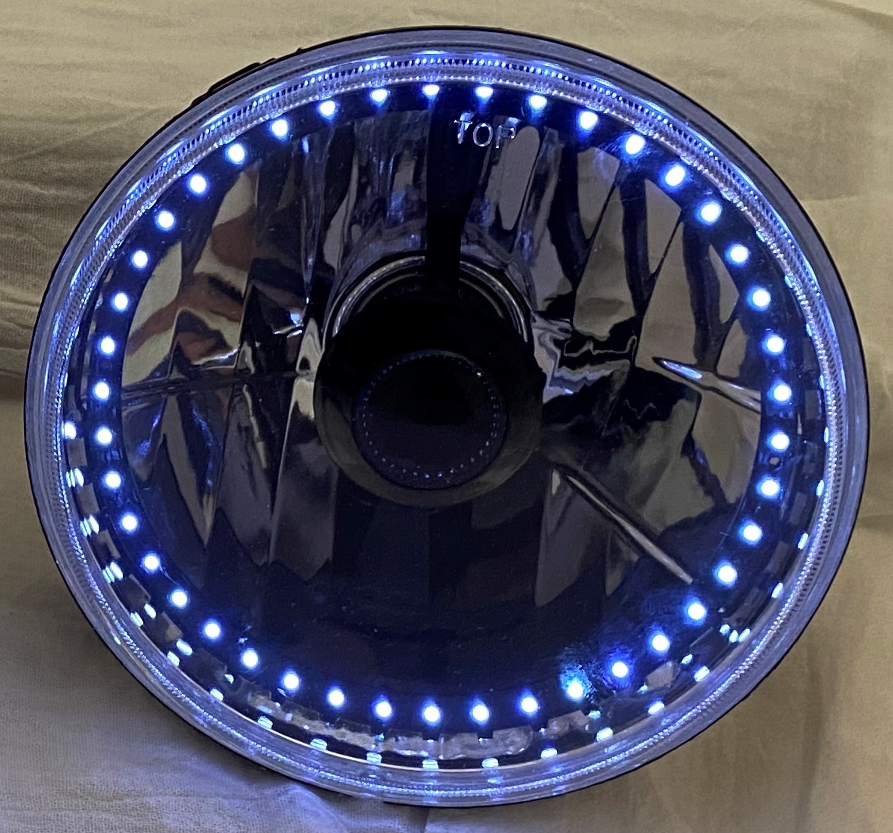 - (1) 7 Inch Round Elite Diamond Single Color White Halo Black Illusion ™ Headlight