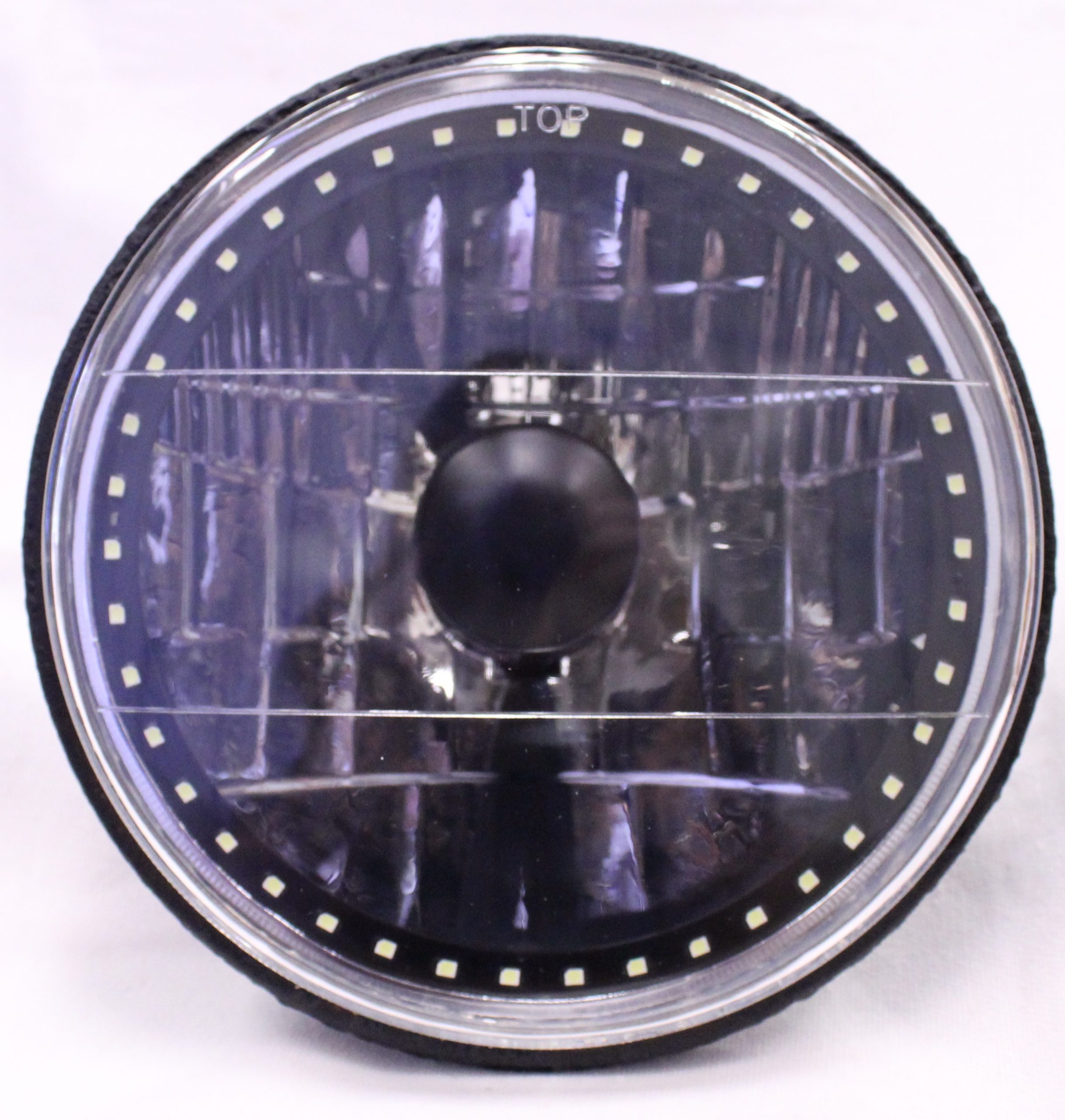 - (1) 7 Inch Round White Diamond Single Color White Halo Black Illusion ™ Headlight