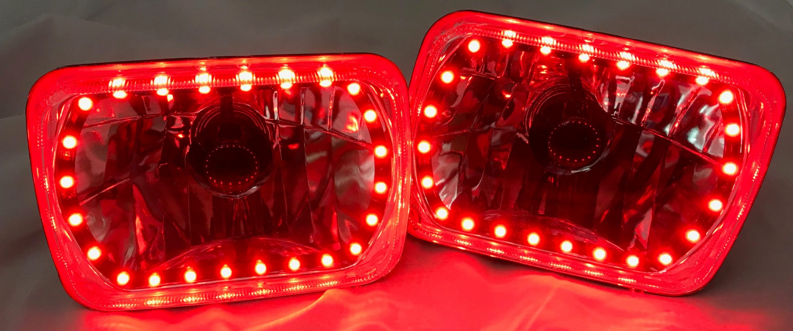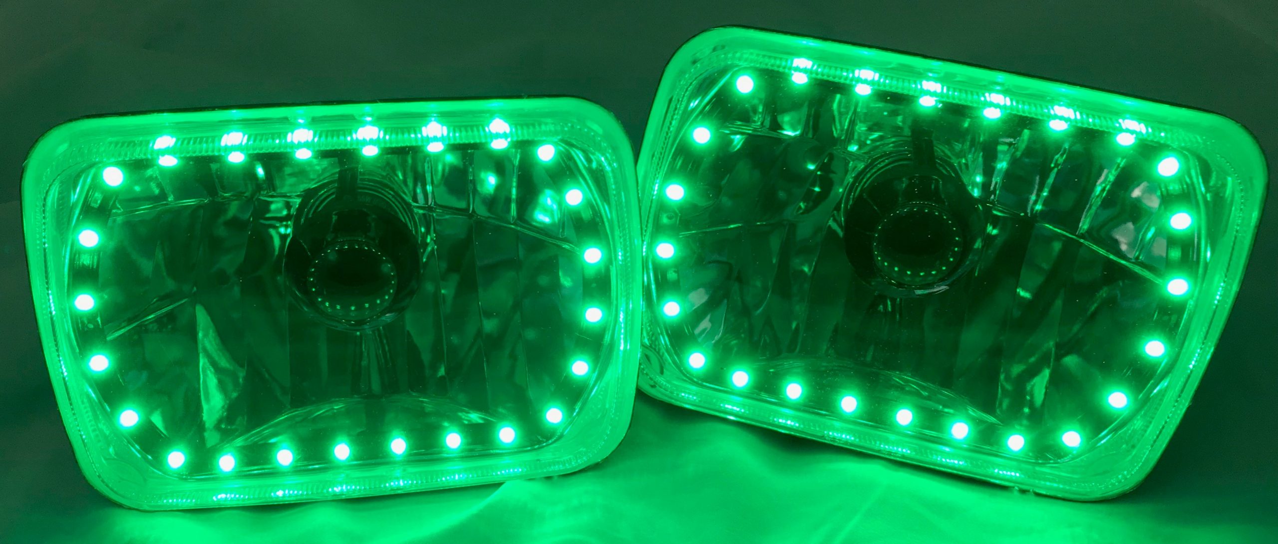 One Pair of 6×7 Inch Rectangle Elite Diamond Multi-Color Halo Black Illusion ™ Headlights with Clear Halogen Bulbs