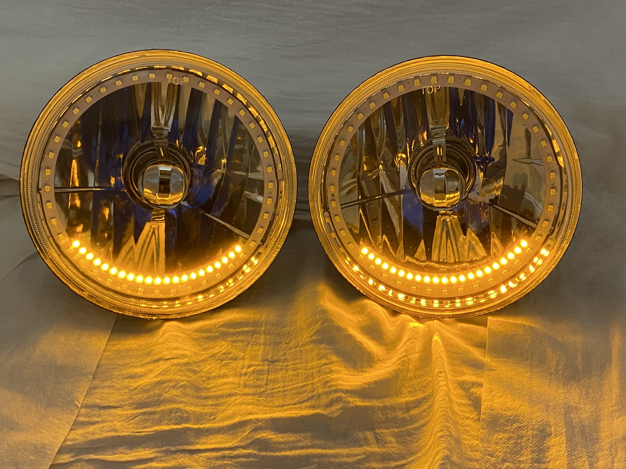 - (2) 7 Inch Round Elite Diamond Single Color White Halo Turn Signal Headlights