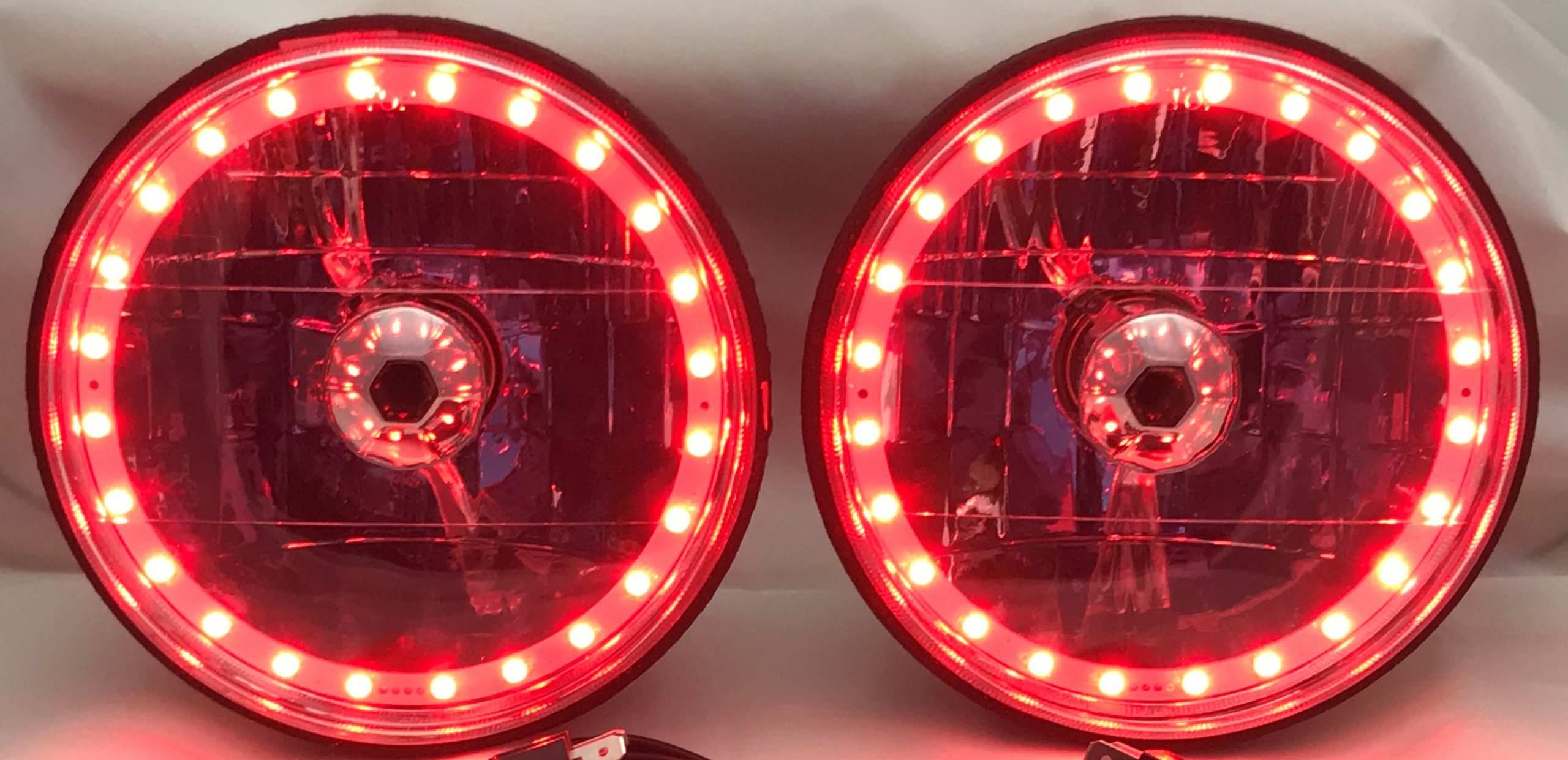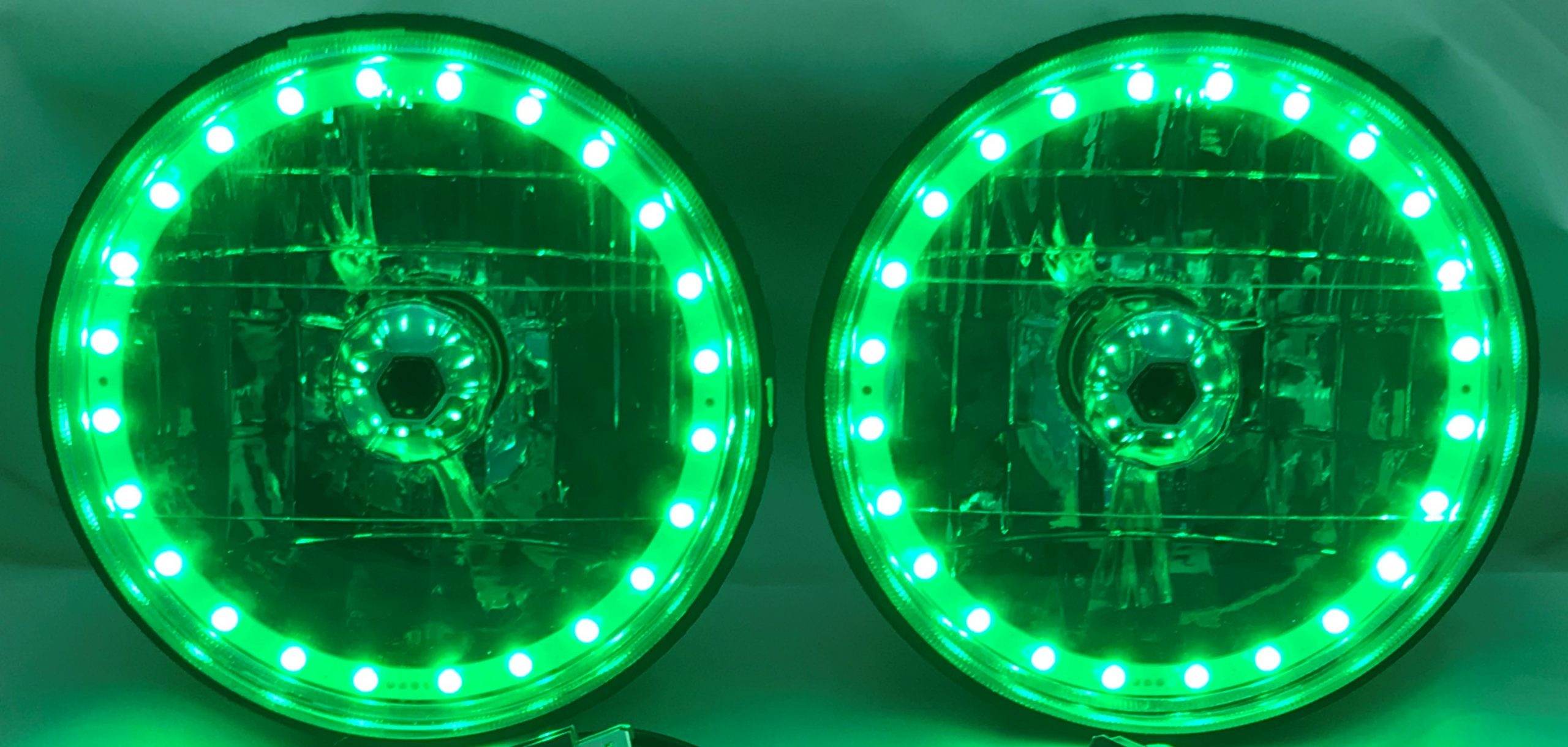 - (2) 7 Inch Round White Diamond Multi-Color Halo Headlights