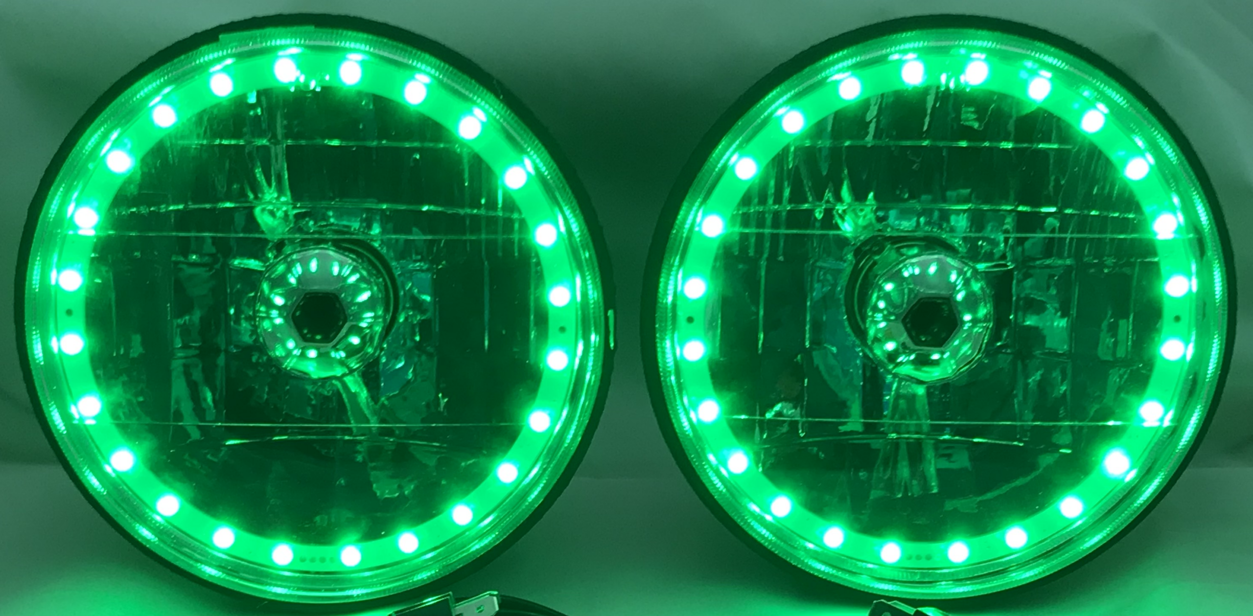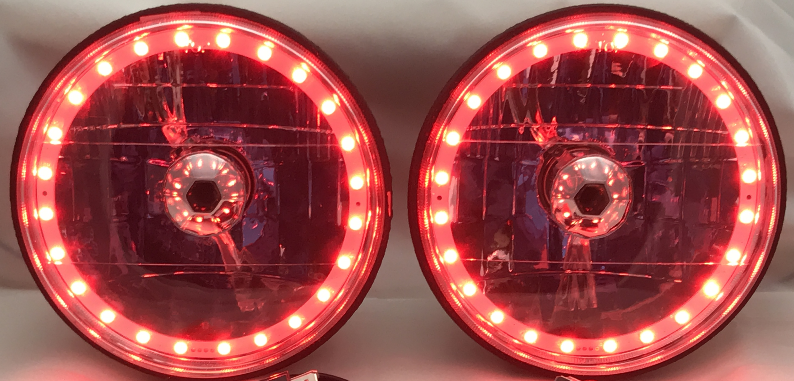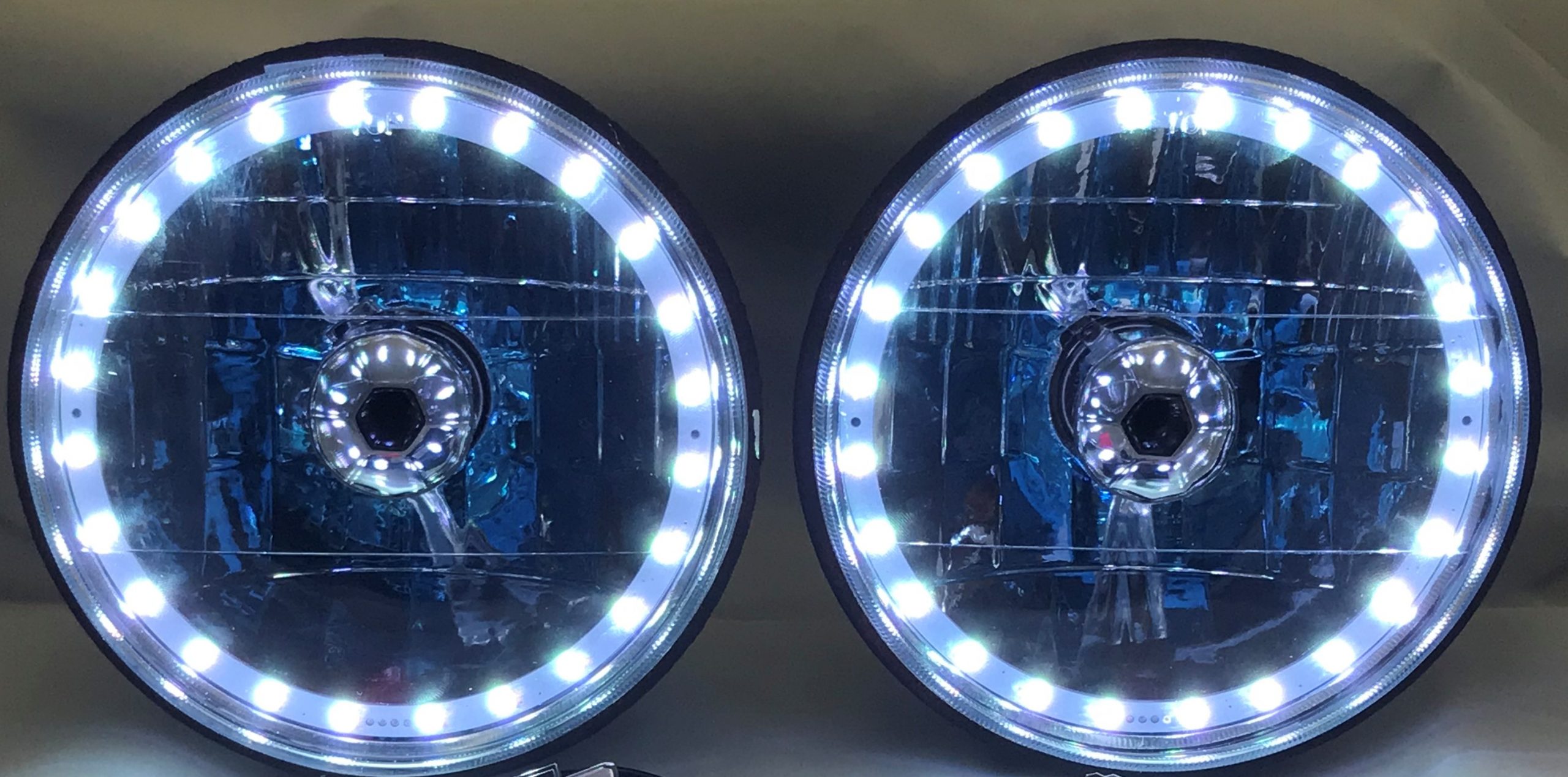 - (2) 7 Inch Round White Diamond Multi-Color Halo Headlights