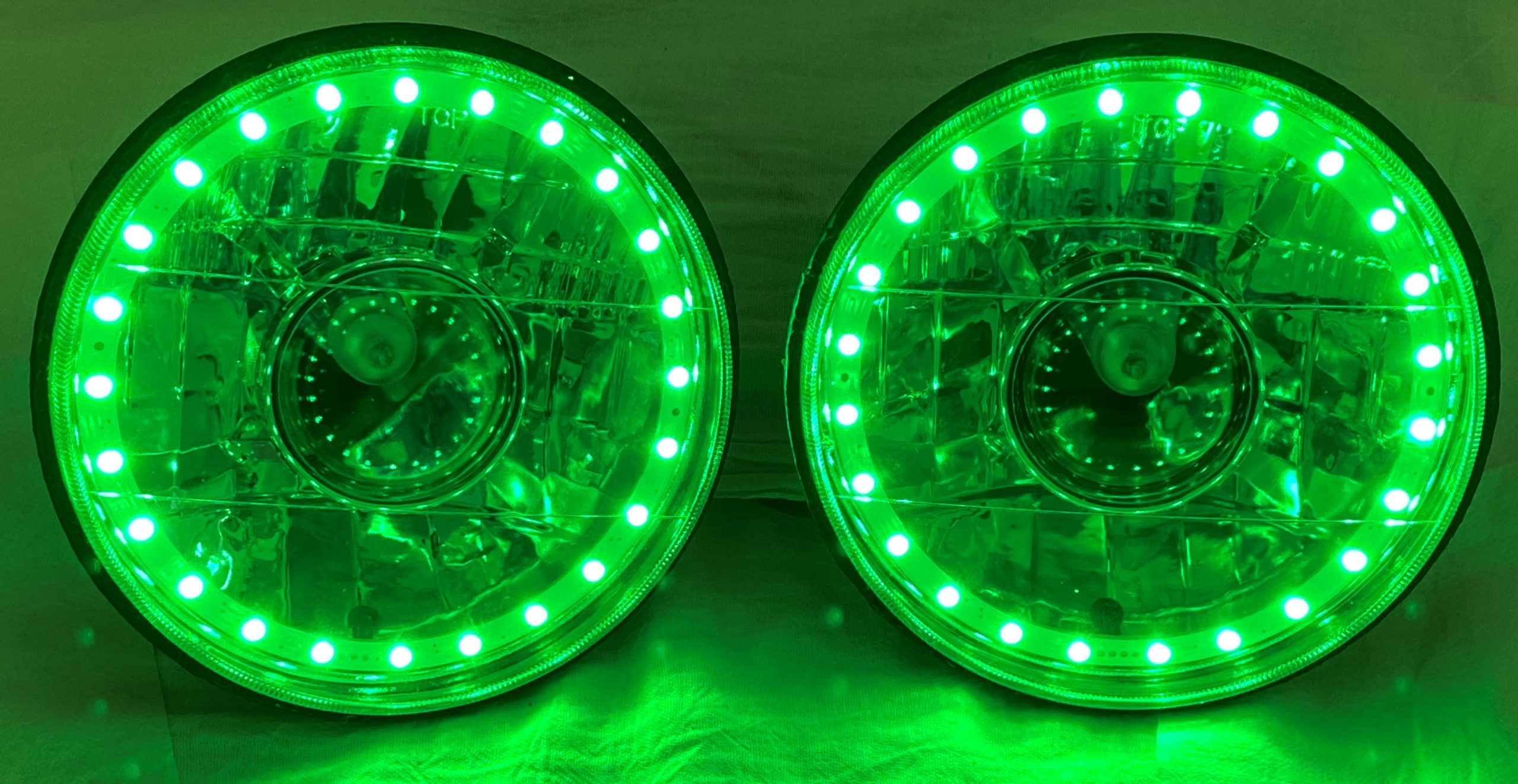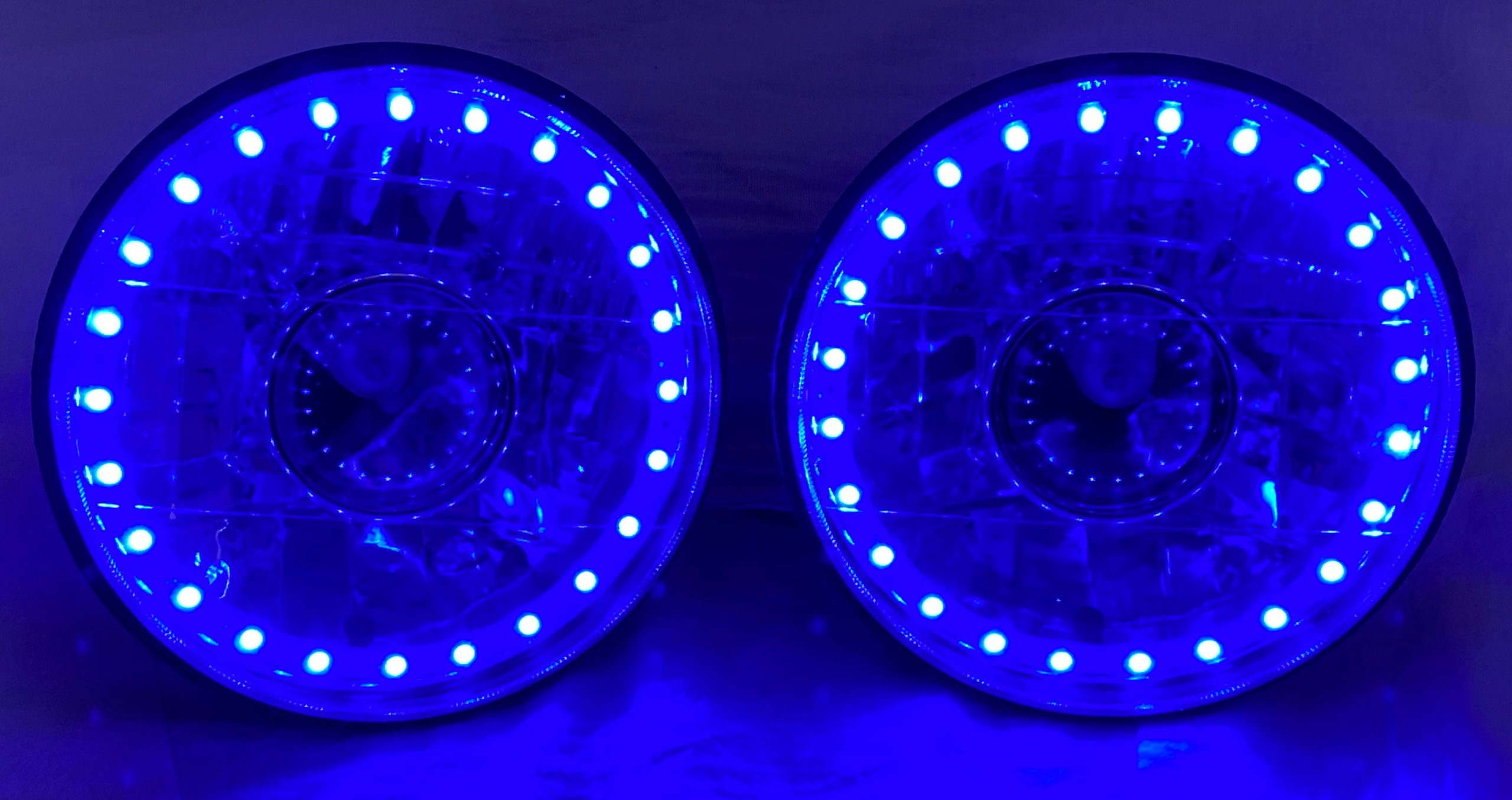 - (2) 7 Inch Round White Diamond Projector Multi-Color Halo Headlights